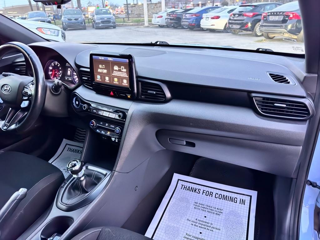 Zoom around town in this sleek Blue 2020 Hyundai Veloster N! This sporty used car is sure to turn heads with its eye-catching design and impressive performance. With a Carfax report available, you can rest assured that this Veloster N has been well-maintained and is ready for many more adventures on the road. Equipped with a turbocharged engine, manual transmission, and sport-tuned suspension, this car offers an exhilarating driving experience that will satisfy any thrill-seeker. Inside, you'll find a comfortable cockpit with supportive seats and a user-friendly infotainment system to keep you entertained on long drives. The ample cargo space and versatile rear hatch make it easy to bring along all your gear for weekend getaways or trips to the farmers' market. Don't miss out on the opportunity to own this exciting and stylish Hyundai Veloster N - come take it for a test drive today and experience the thrill for yourself!